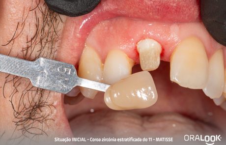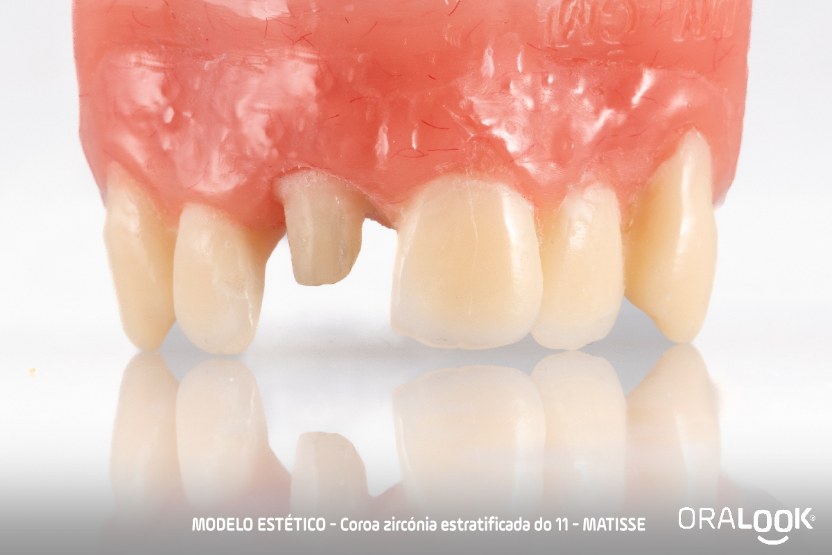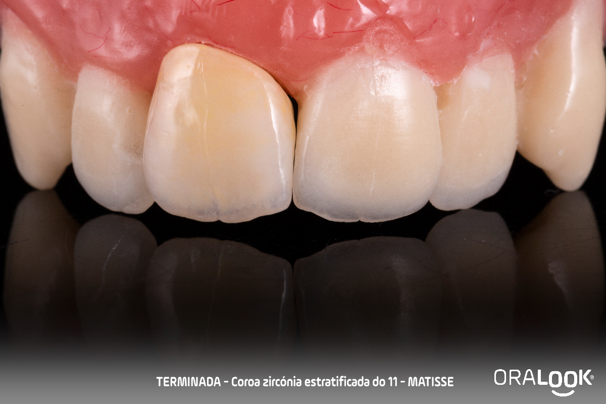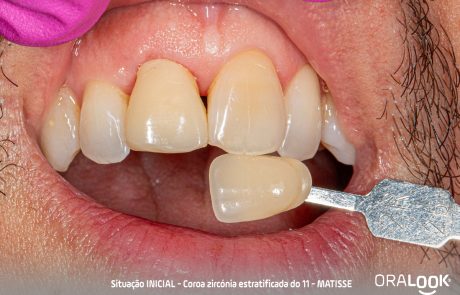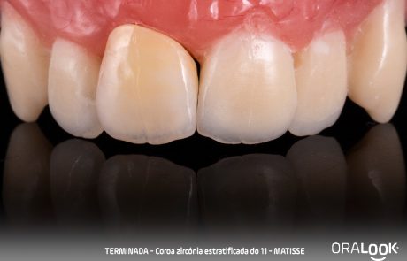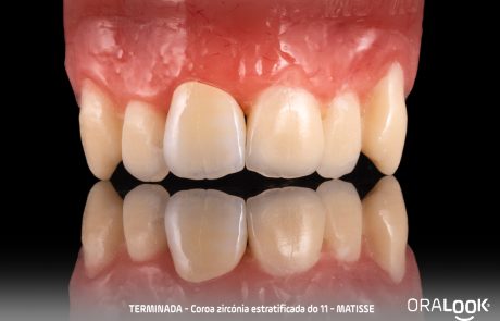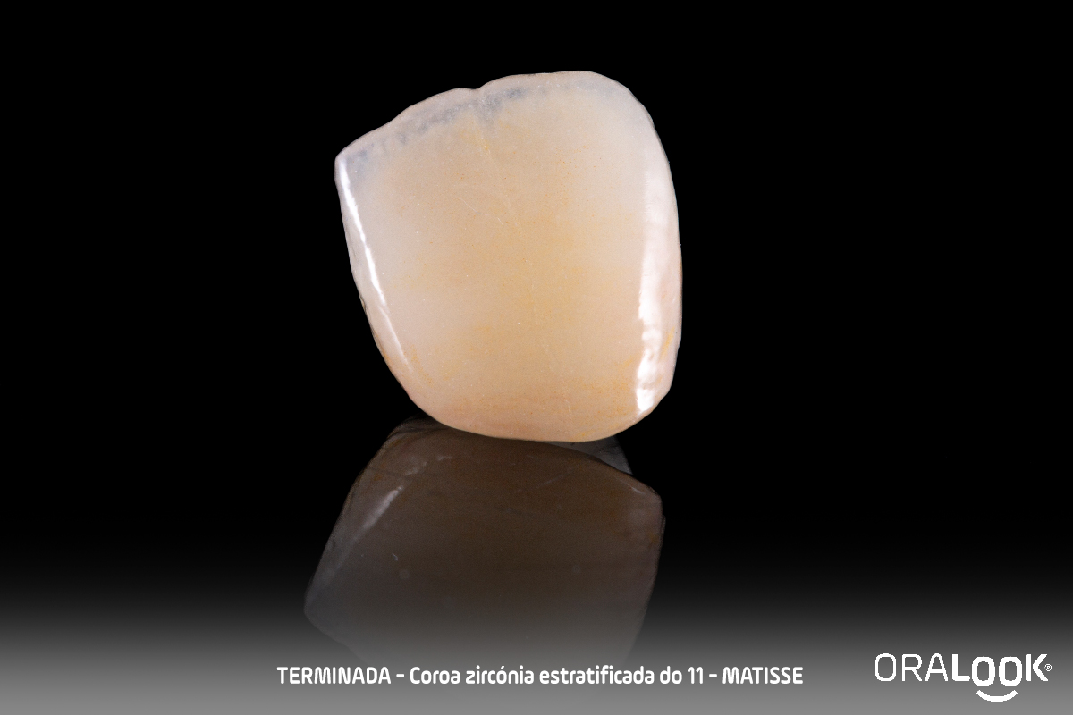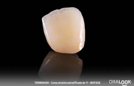 Coroa em Zircónia | Matisse Coroa do 11 em zircónia sobre dente, estratificada com modelo estético, de acordo com o software Matisse e recolha de cor com Optishade. OralookAdmin20242025-07-14T11:19:36+00:00Próteses Fixas, Zircónia|