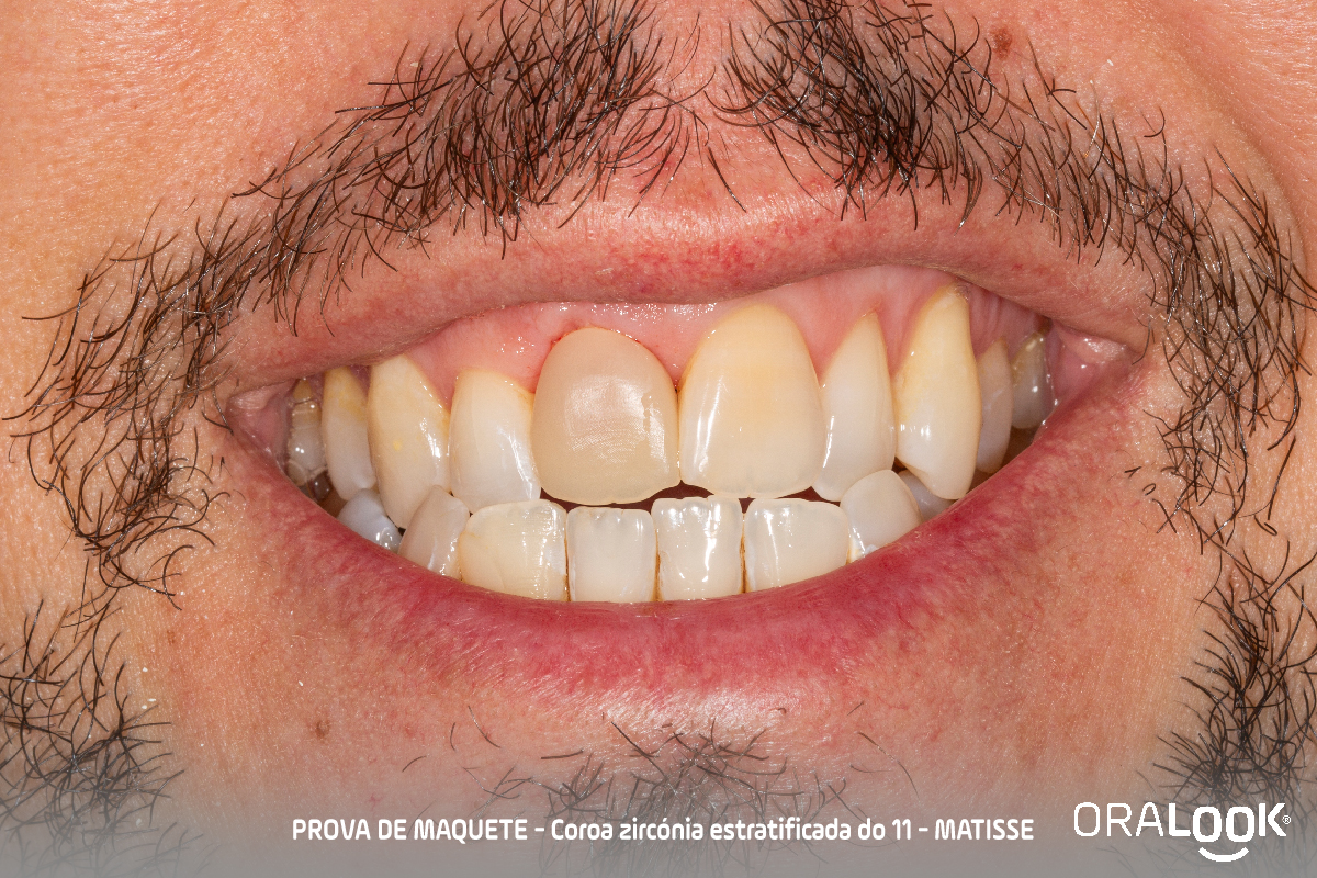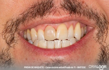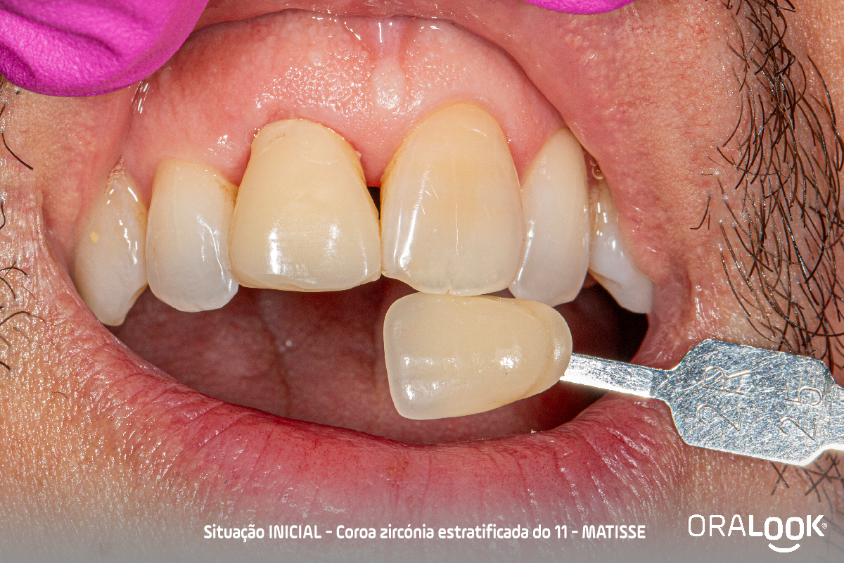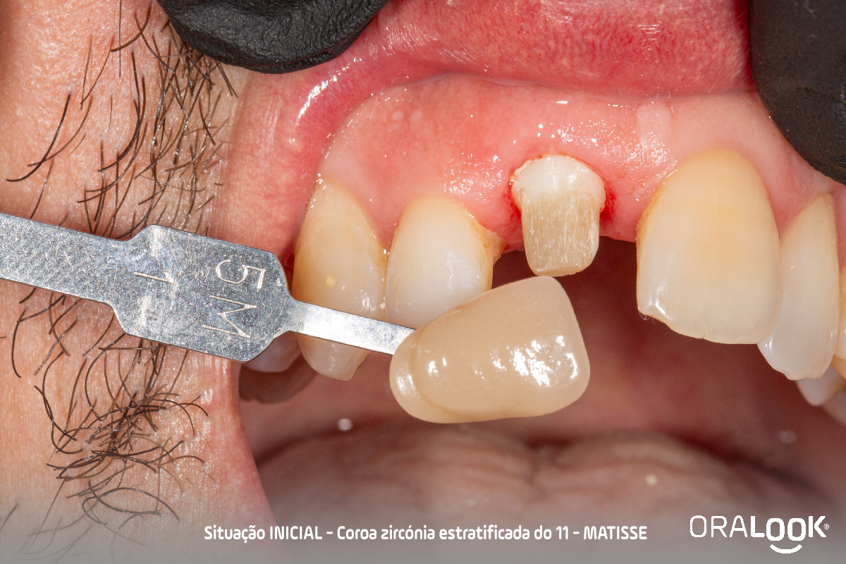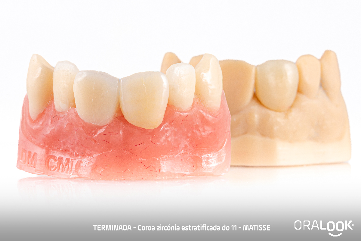 Coroa em Zircónia | Matisse Coroa do 11 em zircónia sobre dente, estratificada com modelo estético, de acordo com o software Matisse e recolha de cor com Optishade. OralookAdmin20242025-07-14T11:19:36+00:00Próteses Fixas, Zircónia|